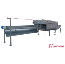 El producto sale de la lavadora mediante un elevador modular que escurre el agua que ..