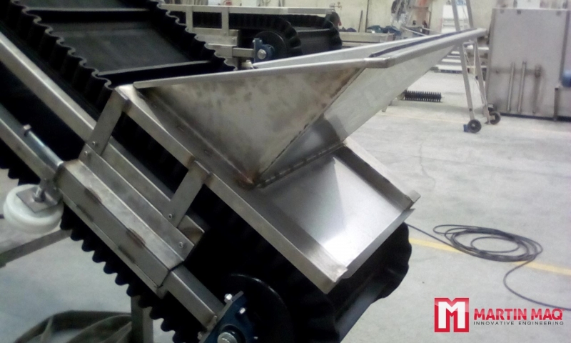 Están construídos en acero inoxidable con banda con tacos y laterales de goma, y las patas son regulables en altura e inclinación, lo que permite que su que su instalación y adaptación a cualquier línea sea muy sencilla.